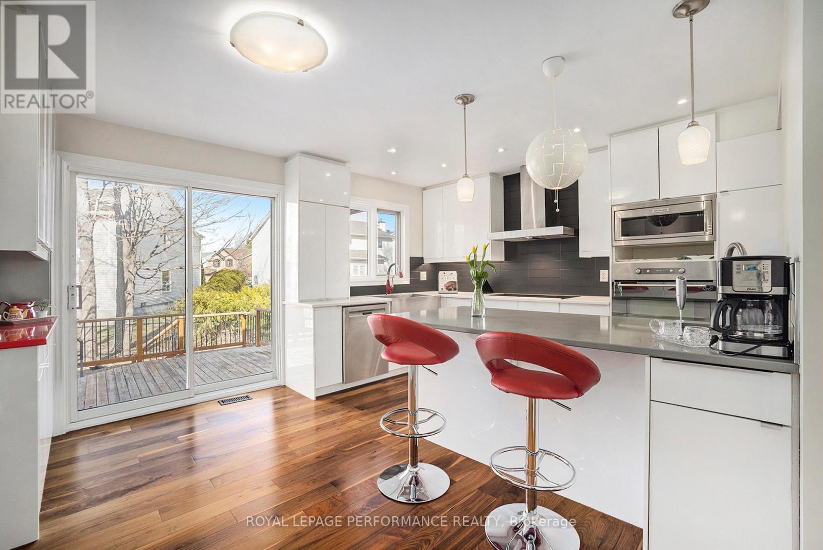 Welcome to this impeccably updated 4-bedroom, 4-bathroom two-storey residence, perfectly positioned in one of Kanata's most sought-after communities. From the moment you step into the inviting foyer, you are greeted by a warm blend of style and comfort. The main level features a seamless mix of hardwood and tile flooring, complemented by a formal living room and a spacious family room anchored by a cozy fireplace. At the heart of the home is a stunning custom kitchen ('14), designed in a timeless black-and-white palette and finished with quartz countertops, a newer cooktop ('25), prep sink, extended breakfast bar, pot lighting, and a designer backsplash. Thoughtfully laid out to balance openness and definition, it flows effortlessly into the dining area, ideal for both everyday living and entertaining. Patio doors lead to a beautiful cedar deck and a large, fully fenced backyard. The main floor is completed by a stylish powder room ('23) and a renovated laundry room ('23) with built-in shelving, a sink, and direct access to the double garage. Upstairs, new carpeting ('24) enhances four spacious bedrooms, including one with a walk-in closet and cheater access to a renovated 4-piece bathroom ('15). The primary suite offers a private retreat with a fireplace ('23) and a luxurious 5-piece ensuite ('14) featuring heated floors, a freestanding tub, glass shower, and dual vanities. The finished lower level adds a large recreation room, a sleek 3-piece bathroom, ample storage, pantry, and extra fridge. Freshly painted ('24), with a 45-year shingle roof ('14), furnace ('14), AC ('20), EV wiring, and 200-amp service. Located near parks, schools, South Highlands Trails, Richcraft Recreation Complex, dining, and Kanata's tech hub. (id:58075)