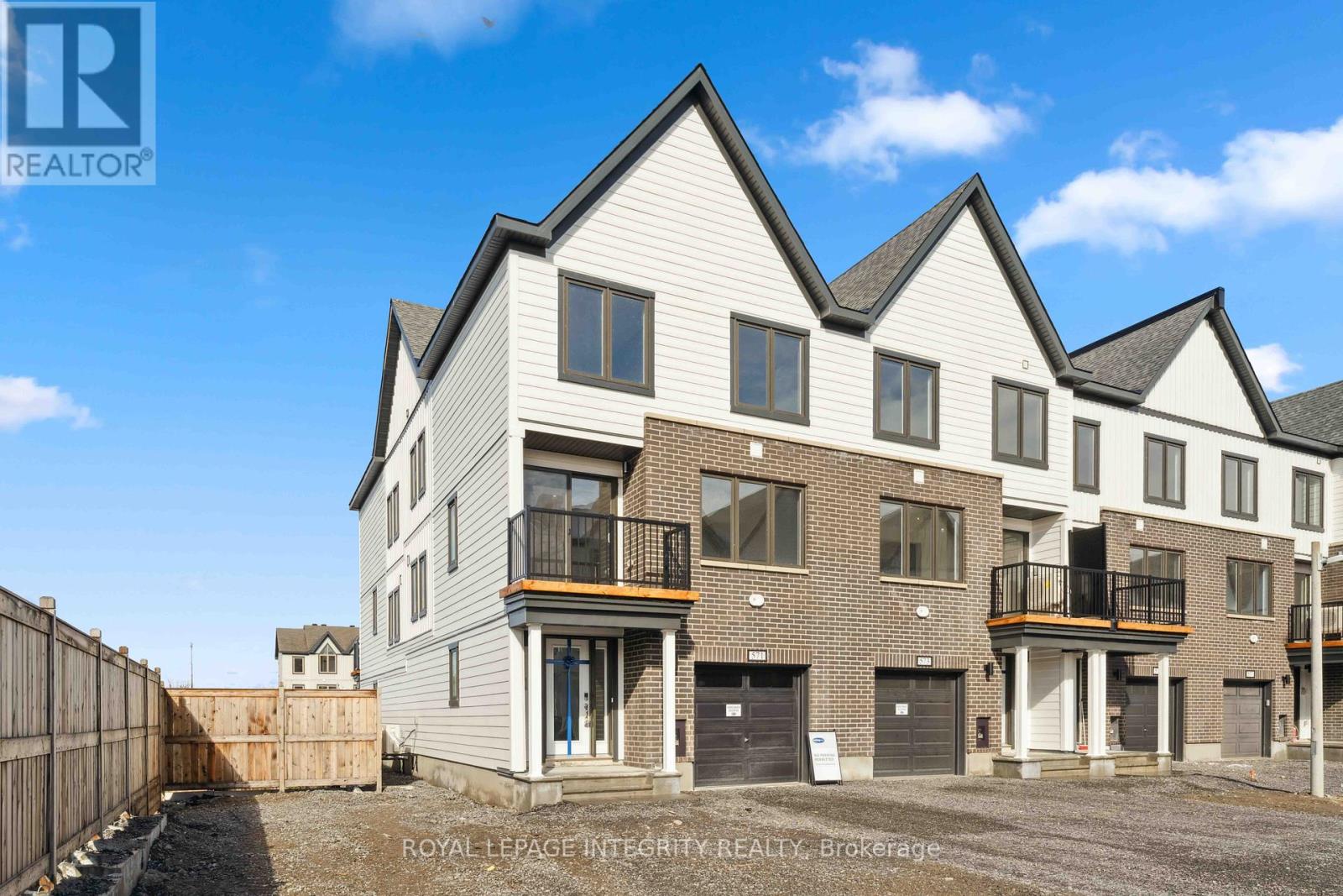 Newer End unit townhouse with a side yard! Modern 2 bed+Den in sought after Stittsville boasts full day of sun and has been fully updated! Welcoming foyer & closet in the entrance complete with a bench. Second floor has a beautifully designed open-concept layout, seamlessly connecting the dining area, living room & a convenient den space leading to the large private balcony. Lots of natural sunlight comes through windows at every level. Spacious Kitchen with upgraded stainless steel appliances, loads of cabinet space. Laminate floor on main lvl and stunning quartz counters throughout. The third floor offers a laundry room with upgraded washer/dryer, main bathroom, and two spacious bedrooms. While both bedrooms boast ample closet space, the primary bedroom boasts a sizable walk-in closet and an ensuite bathroom with a standing shower. Deep garage for extra storage space. A/C included. Close to 417 hwy, Tanger Outlet, CTC, Centrum and all major grocery stores! Rental application required. Available 1st Dec. **GRASS & DRIVEWAY HAVE BEEN COMPLETED** (id:58075)
