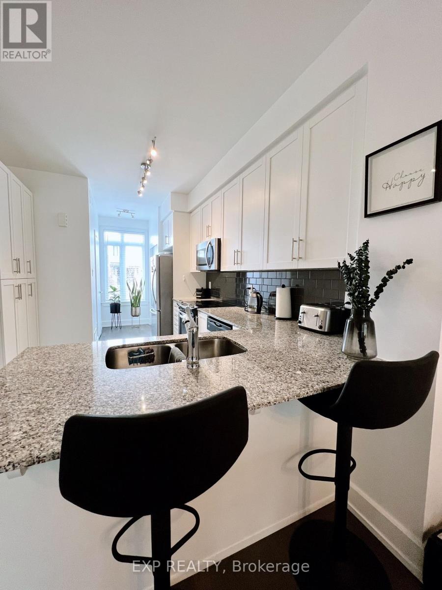AVAILABLE FROM DEC 15th. Backing onto trees with NO REAR NEIGHBOURS, this lovely lower unit terrace home has 9ft ceilings on both floors, granite countertops throughout and comes with TWO PARKING spaces, OWNED hot water tank and municipal WATER INCLUDED in the rent. The SPACIOUS open concept main level features a powder room and a gourmet modern kitchen equipped with a full wall PANTRY and all S/S appliances that opens up to living/dining area with access to the private backyard deck and patio. The lower floor offers the laundry room, clean carpet, TWO FULL BATHROOMS and TWO BEDROOMS. Enjoy being close to schools, parks, transit and plenty of other fabulous amenities! (id:58075)