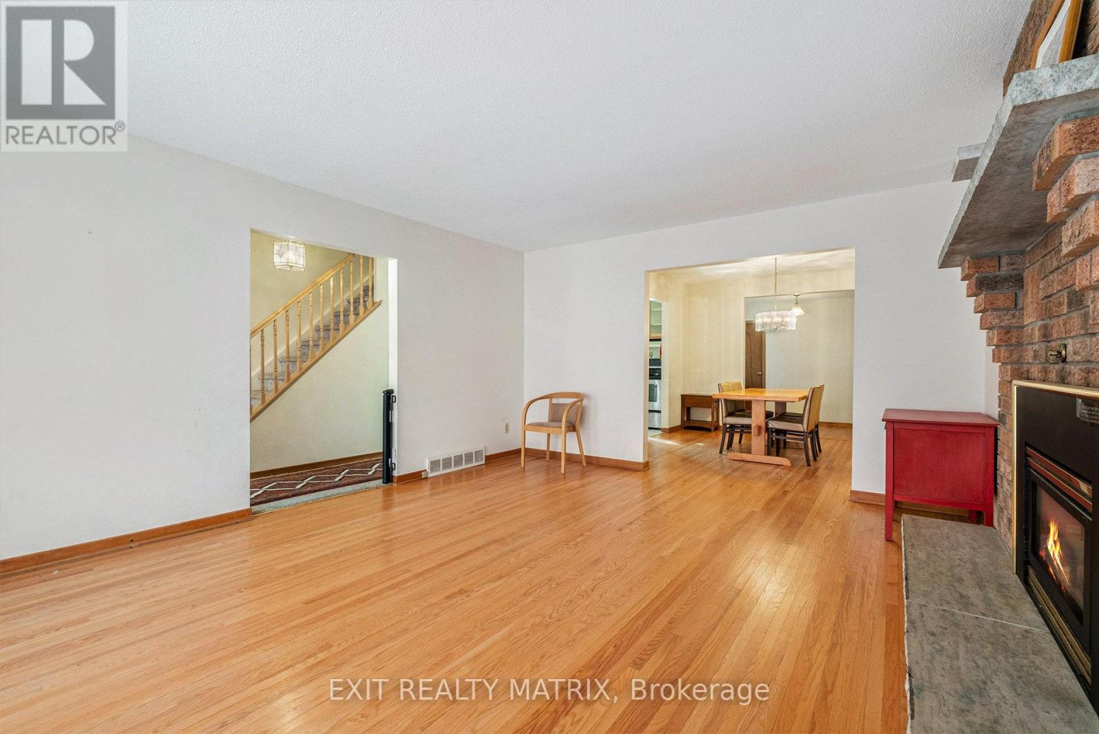 Tucked away on a quiet court in family-friendly Blackburn Hamlet, this spacious detached home backs onto peaceful walking trails and a toddler-friendly park, offering a serene setting with unbeatable walkability. With four bedrooms above grade (5th bedroom available but is currently being used for landlord storage), including a main-floor addition that adds a flexible bedroom and home office, there's plenty of space for families, remote workers or those needing a guest suite. The ground floor features hardwood throughout the living, dining and den spaces, while the kitchen is outfitted with stainless steel appliances and overlooks the large, private yard-perfect for families with children. Upstairs, three additional bedrooms provide versatility, while the fully finished basement includes a cozy family room, laundry in the utility room, and ample storage. The home also features an attached garage and a paved driveway with parking for four or more vehicles. Surrounded by green spaces like Agnes Purdy, Joshua Bradley and Woodhill Parks, plus access to tennis courts, outdoor pool and playground at Bearbrook Park Community Centre, the home is also a short walk to Glen Ogilvie Public School, Emily Carr Middle School, Good Shepherd, Sainte-Marie and Louis-Riel Secondary. Enjoy nearby amenities including Metro, Dollarama and other shops along Innes Road. Tenant pays rent plus all utilities including hot water tank rental. Some furniture available: dining table, dressers and desks. Owner can remove if required. Property managed by RentSetGo Property Management. (id:58075)