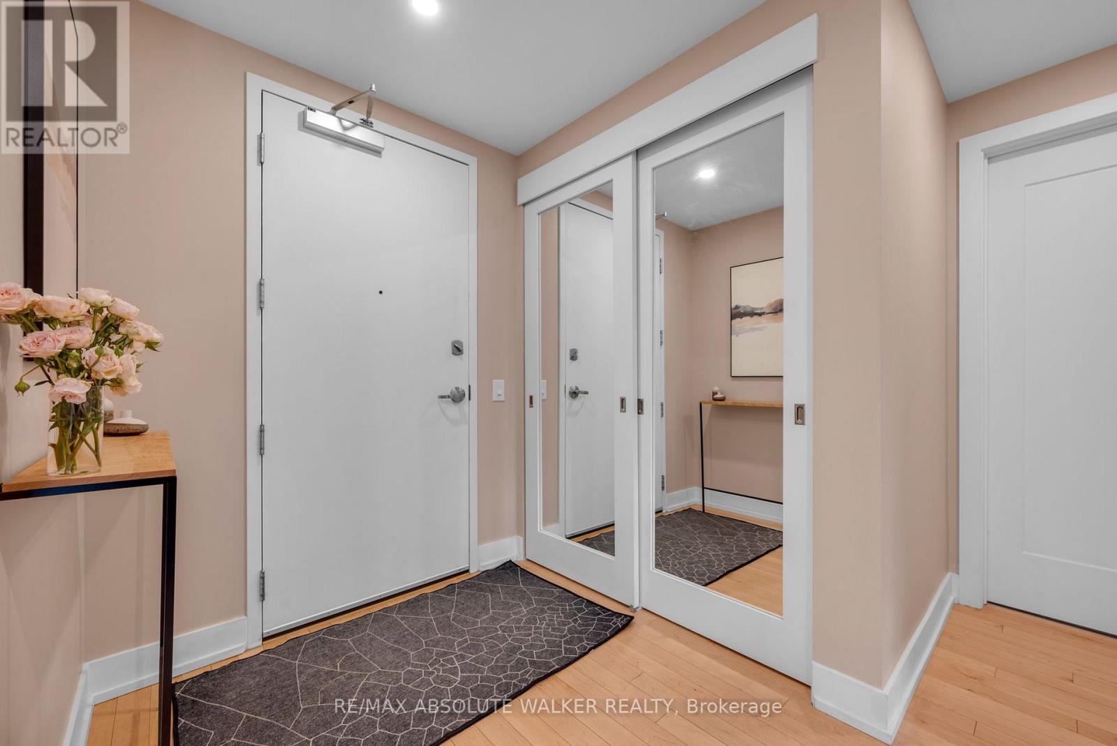 Live where convenience meets contemporary style at The Corners on Main. Built by Domicile, this bright and spacious 850 sq ft Harvey model offers one bedroom, two bathrooms, and thoughtfully curated upgrades throughout. High ceilings and oversized windows flood the space with natural light, while the upgraded kitchen steals the spotlight featuring quartz countertops, a chic herringbone backsplash, premium cabinetry with added storage at the island, and high-end appliances. A custom wine fridge seamlessly integrated into the pantry adds both function and flair. An extraordinary 400 sq ft private terrace is a standout feature, ideal for morning coffee, summer evenings, and entertaining under the stars. Convenience continues with exceptional amenities located on the same floor, including a fully equipped fitness room, stylish party room, guest suite, and a rooftop terrace. Underground parking and a storage locker provide added ease and practicality. All just steps from vibrant cafés, restaurants, green space, and the canal, this is urban living without compromise. Condo fees include building insurance, property management, maintenance, and reserve fund. (id:58075)