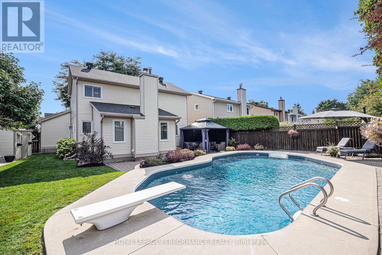 Spectacular Upgraded Family Home with Backyard Oasis on a HUGE PREMIUM LOT in Orleans! Welcome to this elegantly appointed 3-bedroom, 3.5-bathroom residence boasting an INGROUND POOL, a true 2-car garage & perfectly situated in a sought-after, family-oriented neighbourhood, just steps from Gardenway Park! Impeccably maintained and thoughtfully updated, this home blends timeless charm with modern comfort. Step into the inviting foyer and spacious hallway, where HARDWOOD flooring flows seamlessly throughout the main level. The attractive formal living room and impressive dining room are enhanced by plenty of natural light! The bright UPDATED kitchen features resurfaced cabinetry (painted 20), gleaming granite counters, stainless steel appliances including a new fridge & stove (24) & a separate breakfast/eat-in area. Adjacent, the welcoming family room boasts a cozy fireplace, soaring vaulted ceilings, and patio doors opening to the backyard retreat. A stylish 2-piece bath, a separate laundry room with side entry and access to the garage complete this level. The spacious primary suite offers a walk-in closet and a full 4-piece ensuite. Two additional bedrooms share another full 4-piece bath with extra counter space. A skylight above the staircase (replaced 2020) floods the upper hall with sunlight! The fully finished basement offers a massive recreation room, a den with a closet, a 3-piece bath with shower and ample storage space. Your private oasis awaits with an INGROUND POOL featuring a new liner and refinished steps (22), a patio with gazebo, landscaped grounds, fully fenced yard, enclosed flower beds & a garden shed, all perfect for summer enjoyment. More upgrades include: Roof & skylight (20), front & side doors (20), exterior Spray-Net coating (20), shutters on all windows (20). Hot water tank (19). Exceptional location near schools, shopping, restaurants and transit along Innes Rd, this move-in ready gem is the complete package! 24 hrs irrev on offers (id:58075)