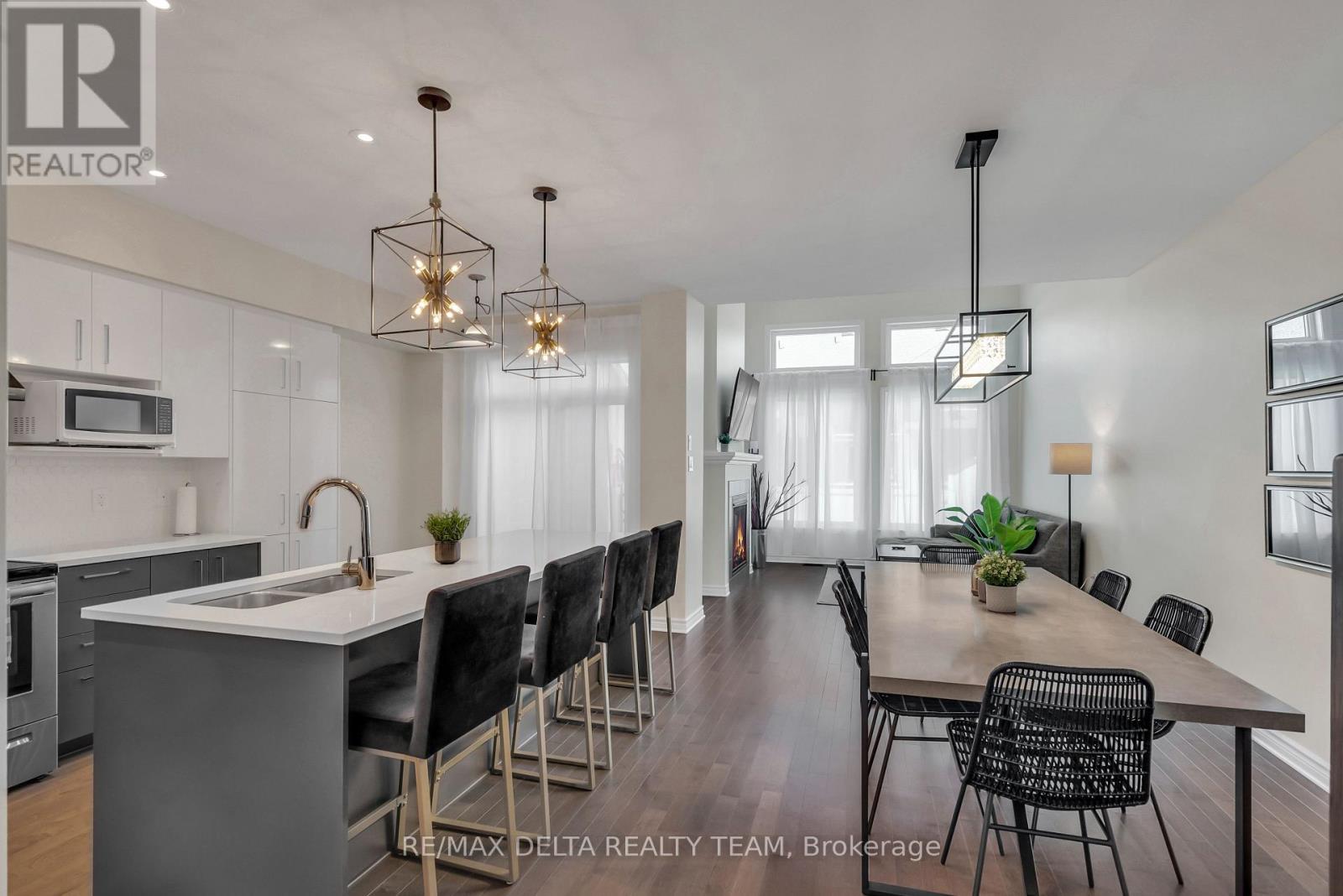 Welcome to this beautifully maintained and FULLY FURNISHED 3-bedroom, 3-bathroom townhome in one of Ottawa's most sought-after neighbourhoods! The main level features hardwood flooring, an impressive 12' vaulted ceiling in the living room (with 9' ceilings throughout the rest of the floor), and a cozy gas fireplace. The chef-inspired kitchen includes an extended island, quartz countertops, and plenty of cabinet space. Large windows fill the home with natural light, and a convenient powder room completes the main floor. Upstairs you'll find a spacious primary bedroom with a 4-piece ensuite and walk-in closet, along with laundry on the second floor for added convenience, plus two additional bedrooms and a full bathroom. Fully finished basement with a generous recreation area. No pets. Please provide Full Credit Report, Proof of income, Employment Letter, Rental Application, and I.D. with all applications. (id:58075)