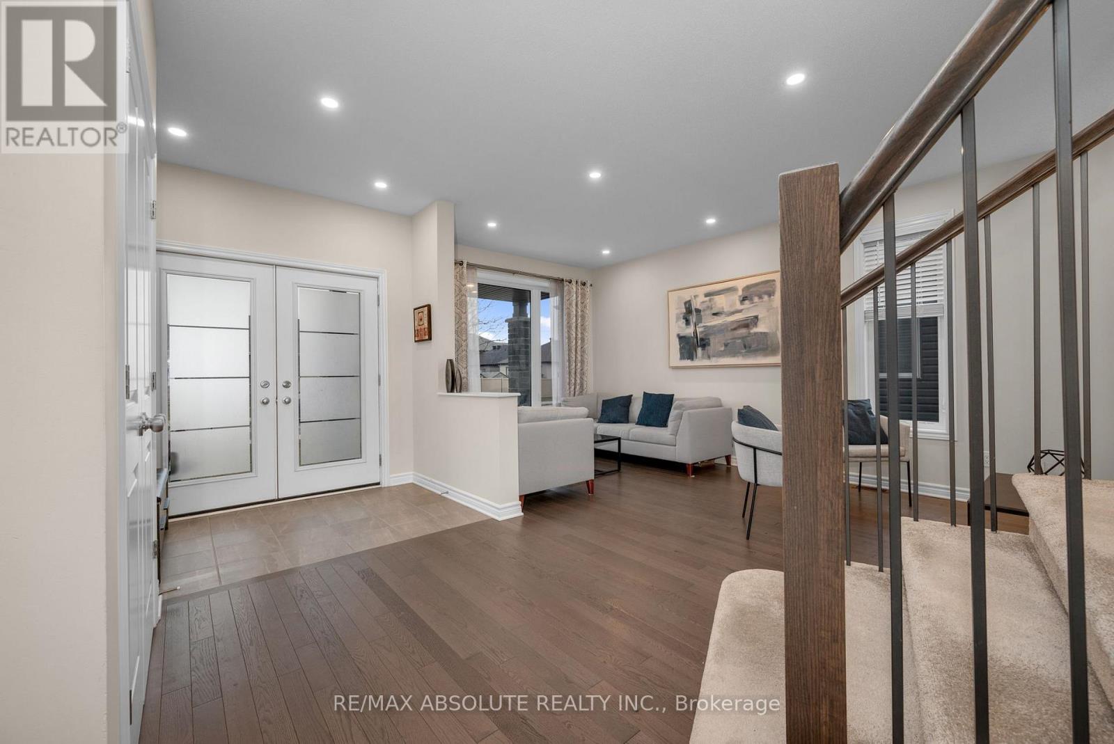 Beautifully designed and spacious family home with a walk-out basement in sought-after Stittsville, set on a pie-shaped irregular lot offering plenty of outdoor space; the main floor features a welcoming foyer with ceramic tile and large coat closet, a bright living and dining room with large windows and quality hardwood floors, a cozy family room with pot lights, gas fireplace, and large south-facing windows overlooking the backyard. The well-appointed kitchen offers ample cabinetry, quartz countertops, oversized island with power, walk-in pantry, stainless steel appliances, and convenient built-ins including a microwave shelf and separate garbage cabinet. A patio door from the eating area leads to the back deck and staircase to the yard. Pot lights are featured throughout the main level. The upper level offers five spacious bedrooms including a generous primary retreat with two walk-in closets and a private ensuite with quartz counters and tub/shower. Four additional bedrooms all feature ample closet space and large windows. A full main bathroom offers quartz counters and convenient linen storage in the hallway. The fully finished lower-level walkout adds incredible versatility with quality carpeting, a bedroom with large closet and full floor to ceiling windows, full 3pc bathroom, living area, and kitchen complete with fridge, sink & plenty of storage-ideal for multi-generational living or an in-law suite. This home is the perfect combination of functional and luxury. 24 hours irrevocable on all offers. (id:58075)