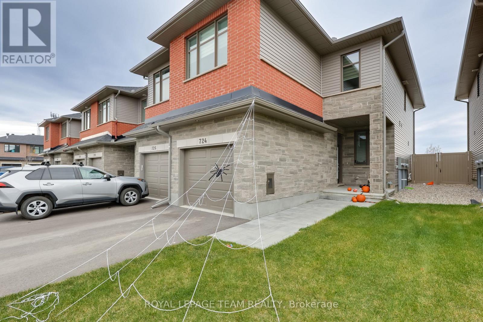 Welcome to this beautifully designed end-unit Beckwith model townhome with a 2nd-level family room by Patten Homes, offering approximately 2,045 square feet (as per the builder) of contemporary living space in the sought-after community of Stittsville South. Combining thoughtful design, functionality, and elegant finishes, this relatively new home provides the perfect balance of comfort and style for today's modern family. A welcoming foyer with a split-level feature, powder room, and attached single-car garage with inside entry completes this well-designed layout. The open-concept main floor creates a warm and inviting flow between the kitchen, dining, and living areas-ideal for both entertaining and everyday living. The gourmet kitchen is the heart of the home, featuring quartz countertops throughout, a large island with a breakfast bar, sleek cabinetry, and abundant counter space, opening seamlessly to the bright dining area and spacious living room. A gas fireplace set on a statement wall adds a modern focal point, while large ceramic tiles enhance the home's contemporary appeal. Step outside to the 6' x 4' wood deck and enjoy relaxing moments with no rear neighbours. Upstairs, a large family room with a cozy gas fireplace becomes a natural gathering hub for movie nights or quiet reading. The primary suite is a peaceful retreat with a walk-in closet and a spa-inspired ensuite, while two additional bedrooms share a well-appointed full bathroom. A convenient laundry center on the same level adds everyday practicality. The lower level remains unfinished, offering ample storage and the flexibility to design a future rec room, gym, or office to suit your needs. Located close to schools, parks, shopping, and future green spaces, this end-unit townhome delivers exceptional comfort, convenience, and community in one of Stittsville's fastest-growing neighbourhoods - a modern home that truly has it all. (id:58075)