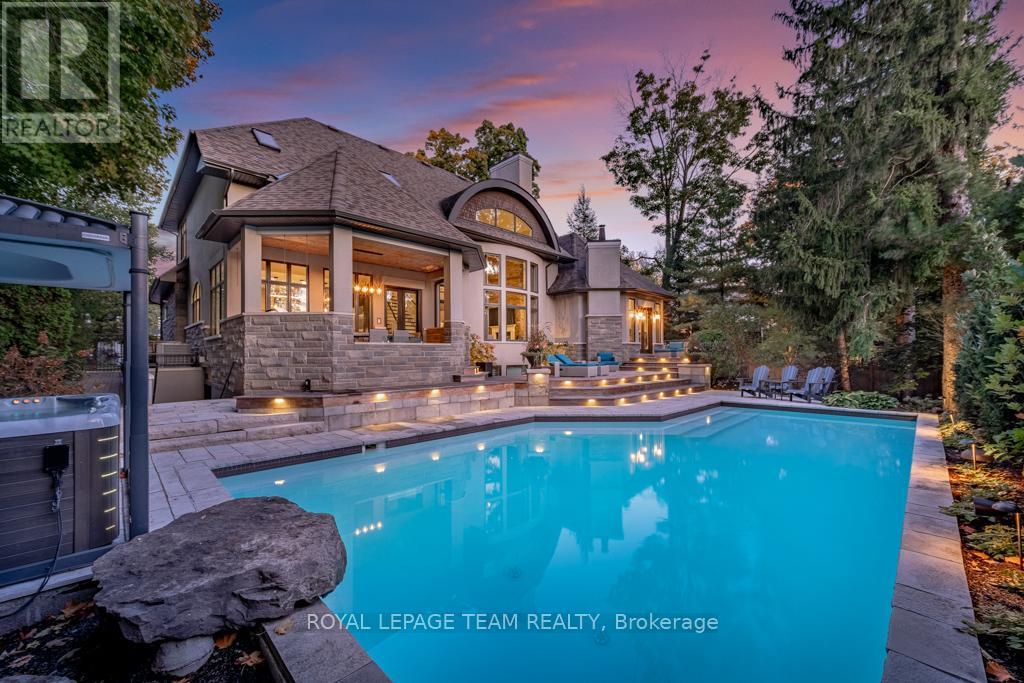 Visit Rockcliffe Park to discover this stunning home, completely turnkey and ready to enjoy from day one. A home built for connection, comfort, and unforgettable moments-luxury that feels effortless. Morning coffee on the deck, evenings by the fire, summers by the pool. This home is designed with multiple inviting spaces so everyone can spread out, relax, and feel at home. Step into a spectacular main floor featuring high ceilings, walls of windows, brilliant natural light, and refined finishes throughout. Work from home in a dedicated office, host guests in an elegant dining space, and unwind in a grand living room by the fire.The spacious, light-filled eat-in kitchen is perfect for hosting-whether everyday living or unforgettable gatherings.The primary suite is a true retreat, featuring a vaulted ceiling, private outdoor access, and a luxuriousensuite. Staircases lead to three spacious bedrooms, two full bathrooms, and an upper laundry area.The backyard is a world-class private retreat with a gunite pool, hot tub, expansive decking, forested backdrop, and landscaped gardens. An expansive lower level offers exceptional flexibility, including a bedroom with ensuite and space for recreation, fitness, or entertaining. Enjoy year-round indoor and outdoor activities-tennis, boating, and biking in the summer; skating and cross-country skiing in the winter-all just steps away. Shop, dine, and connect along Beechwood Avenue. Entertain beautifully. Live effortlessly. Experience it today. (id:58075)