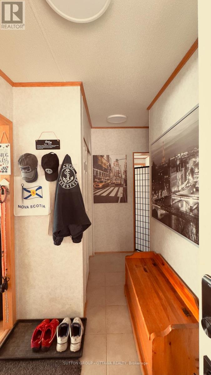 Welcome to Ashton Pines Retirement Community, this is a 55+ community! This cozy 2 bedroom, 1 bathroom, double unit has a warm and inviting cottage/cabin feel throughout with its open concept living-room/dining-room/kitchen area and vaulted ceilings. Roof was done in 2022, a new Lenox furnace and a new Lenox A/C was installed in April of 2023, the Lenox furnace was subsequently replaced with a KeepRite furnace in 2024 as the Lenox one was not CSA approved for installation in a mobile/manufactured/modular unit, new LG Propane/Gas stove, new Broan stainless steel dual light 2 speed range hood fan, new LG Wash Tower, all new LED ceiling lights (5 total) throughout, custom built TV mount over fireplace. There's also a brand-new LG Water Softener unit, brand-new Moen Kitchen and Bathroom faucets, brand-new bathroom sink, new tub/shower doors, and a brand-new LED light/ceiling fan in the master bedroom.Outside are 2 new light fixtures with dual outlets, original wood shed (I think it's 12'x8') at the back of the house, an additional new Lifetime 8'x15' shed, an 8'x12' barbecue deck in back of Lifetime shed, new (approx 8'x18') roof over the main deck, a poured cement walkway between shed and porch.Certain furnishings may be available to sell with the home for additional cost.Community access outdoor swimming pool.Current monthly land lease fee is $734 and includes monthly water testing fee of $41, and yearly property taxes of $884. (id:58075)