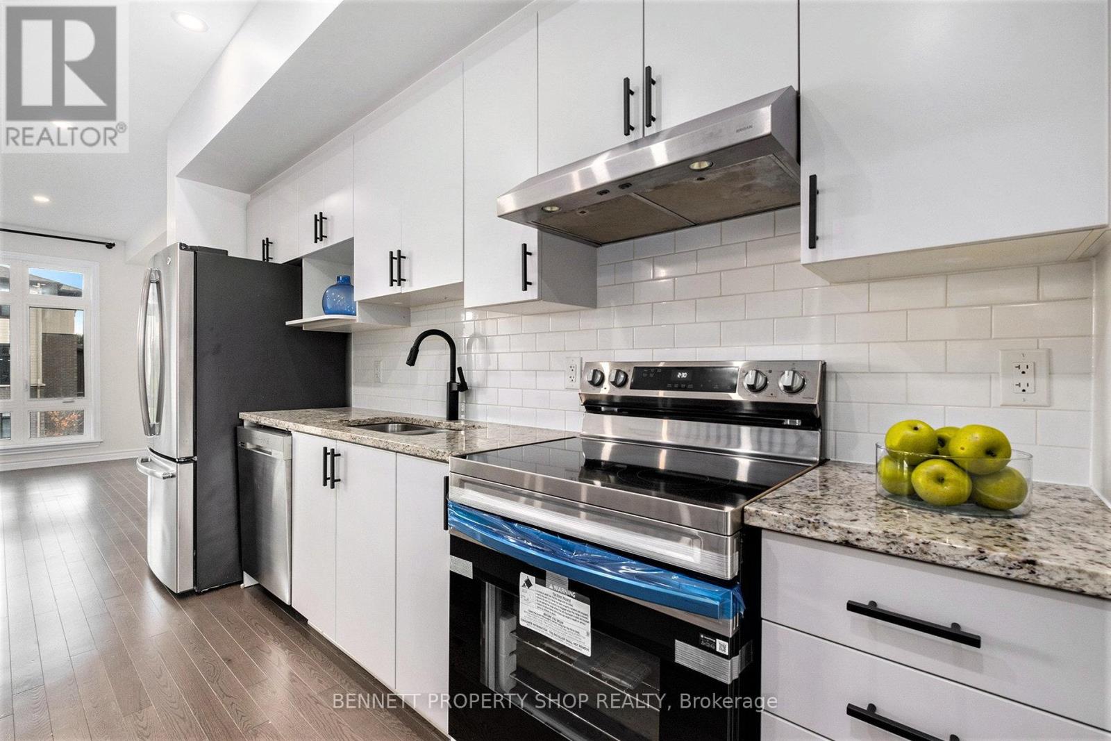 This luxurious three-story townhome, freshly painted from top to bottom, exudes sophistication and backs onto a serene, family-friendly park, offering a perfect blend of modern elegance and outdoor charm. Enter the main floor to a versatile, wide-open space ideal for an at-home office, additional bedroom, or cozy den, bathed in natural light for a warm, inviting feel. Ascend to the second floor, where an open-concept design seamlessly integrates a dedicated dining room, a spacious living room featuring 9ft ceilings, near floor-to-ceiling windows on both north and south sides, flooding the space with sunlight and park views, and a gourmet kitchen boasting stainless steel appliances and brand-new stainless stove, sleek quartz countertops, and a large island perfect for coffee and conversations. A covered second-floor balcony overlooks a beautifully landscaped courtyard and the vibrant community park, creating an idyllic spot for relaxation or entertaining with convenient gas outlet for BBQ. Upstairs, three generously sized bedrooms await, including a primary suite with a spa-inspired ensuite featuring a walk-in shower and high-end quartz vanity, complemented by a second full bathroom with matching finishes. With abundant natural light, luxurious quartz details, and direct access to green spaces, playgrounds, and walking paths, this recently renovated townhome offers unparalleled space, convenience, and a lifestyle of comfort and connection in a community-oriented setting. (id:58075)