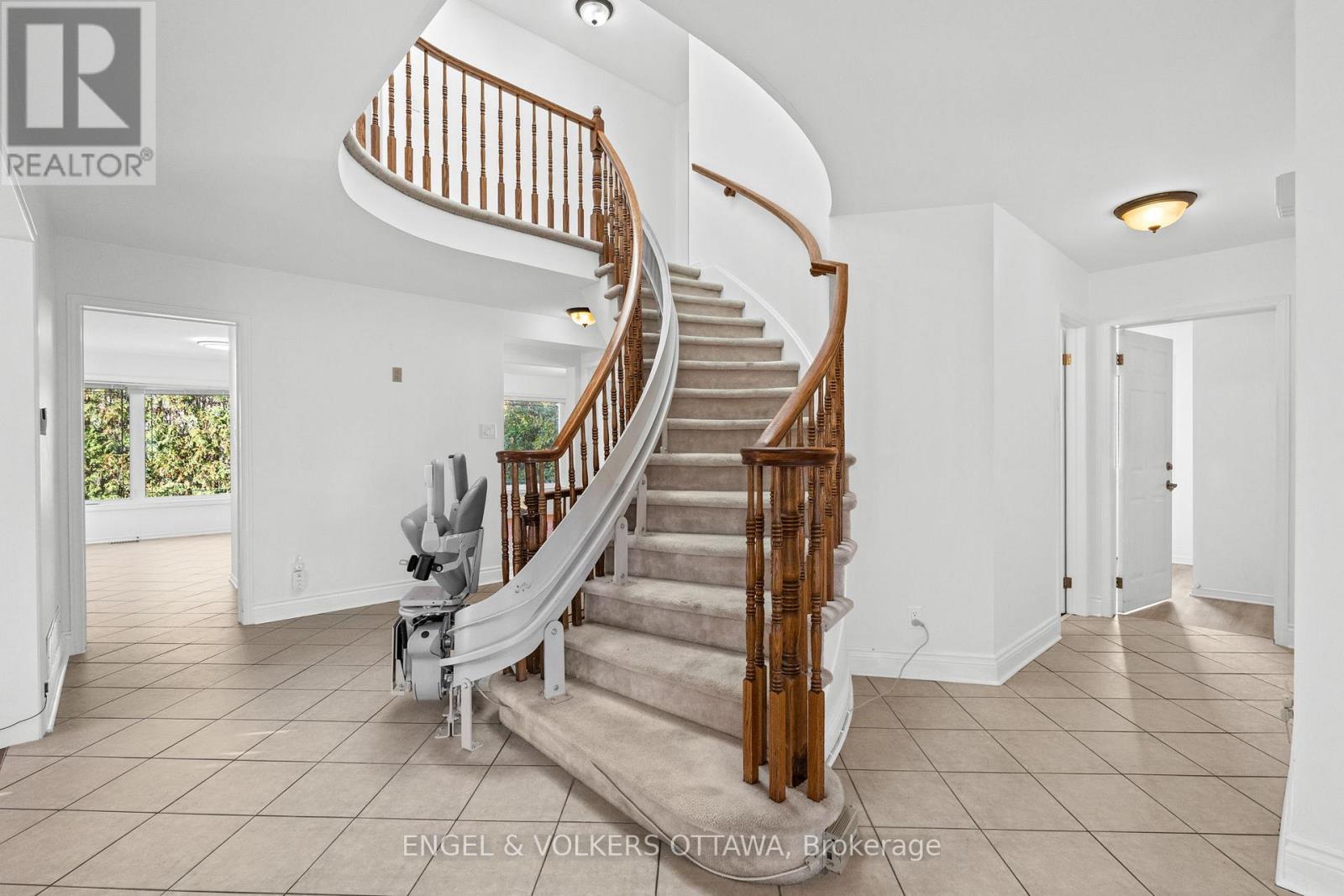 Situated in Fallingbrook, this well-maintained family home offers generous living spaces and a warm, welcoming atmosphere, set on a private, sun-filled corner lot surrounded by mature greenery. Passing the freshly asphalted driveway and interlock porch, the main level welcomes you with a sweeping, curved staircase that leads to the adjoining living and dining rooms, which feature rich hardwood flooring, smooth ceilings, and crown moulding. The updated kitchen has sleek white cabinetry, ample counter space, stainless steel appliances, and a layout that opens to the family room, which is anchored by a wood fireplace and large windows overlooking the backyard. Upstairs, the expansive primary suite features hardwood flooring, abundant natural light, and a 5-piece ensuite bathroom with a deep soaker tub, dual-sink vanity, bidet, and separate shower. A den space and three additional bedrooms provide flexibility, each with large windows, generous closet space and one with a 4-piece ensuite of its own. A second 4-piece bathroom on this level services the other two secondary bedrooms, while a skylight adds brightness to the entire level. The fully renovated lower level features a spacious recreation room, recessed lighting, and built-in cabinetry. Two additional spaces, a 2-piece bathroom and a storage area complete this level. Outdoors, the private backyard is framed by mature hedges for privacy and features a large grass area, making it a great gathering space for the family. Set in a peaceful, family-oriented neighbourhood, this home offers proximity to top-rated schools, beautiful parks, and walking trails, including Princess Louise Falls. With quick access to major routes and the upcoming Orléans LRT extension, this is the perfect home for families and professionals alike! Notable features include a central communication system, a central water filter, solar panels, a HEPA Air filter, and central heat & cooling are supplemented by a thermopump for added efficiency. (id:58075)