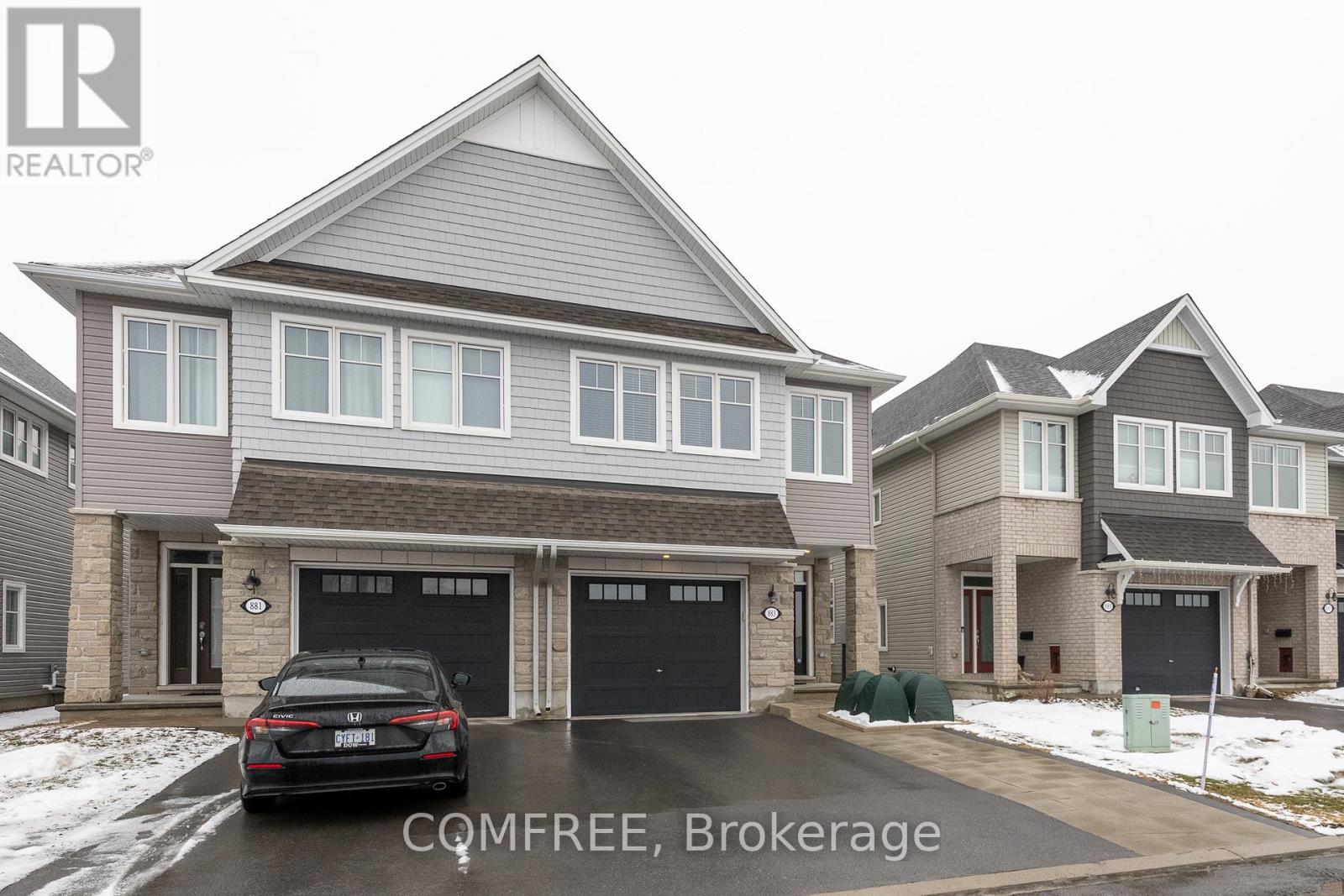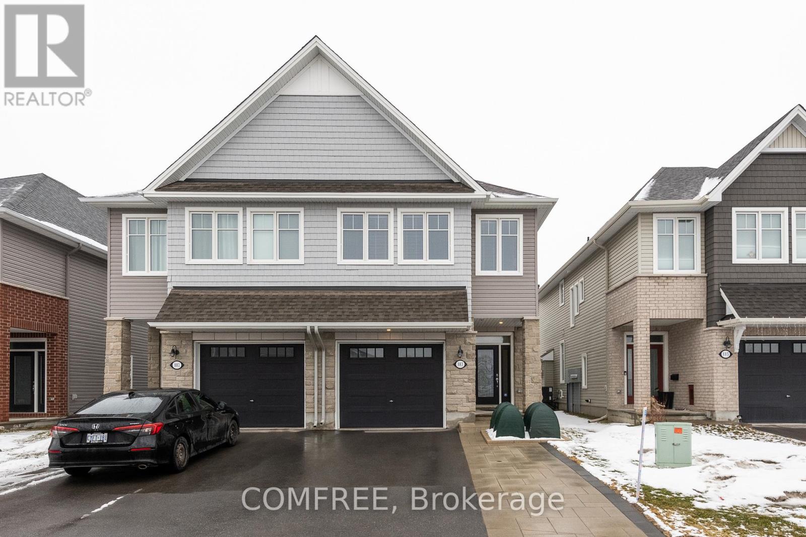 This sought after community of cardinal creek Orleans home is a semi-detached Folkstone model at 2,155 Sq Ft with stone frontage offering bright open layout with modern hardwood flooring throughout the main level with 9 foot ceiling. Large windows with zebra blinds fill the home with natural light. The open-concept main floor is anchored by a modern kitchen featuring quartz countertops throughout with a large centre island seating, includes stainless steel appliances, ample cabinetry, and a large pantry flowing seamlessly into the living room and dining area. A cozy gas fireplace adds warmth and definition to the space. For added comfort also equipped with central A/C. The upper level includes 3 spacious bedrooms, with a well appointed primary suite with huge walk-in closet, a sitting area and a large luxurious ensuite complete with a large soaker tub and separate shower and 2 sinks. Convenient second floor laundry with tub and cabinetry which includes washer and dryer and a main bathroom complete the upper level. The professionally finished basement provides additional living space ideal for family room, home theatre, home office or gym, along with a large storage room. The backyard offers a 10x10 custom built shed with a no maintenance interlock patio. The driveway is widened by interlock which is wide enough for 4 vehicles including garage. Landscaping in the front and backyard. The oversize garage with 10 ft wide garage door offers easy entry with garage door opener and lots of room for storage. A 2 minute walk to a park which includes a splash pad, skating rink and community building. Close to shopping, schools and short commute to LRT. Future school close by. (id:58075)