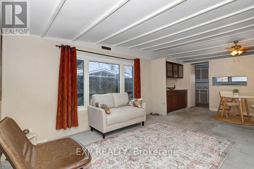 Finally- an opportunity for affordable home ownership in Bellwood Estates. This mobile home on a land lease is in a convenient location to walk to transit and groceries. Property offers a private driveway, a good sized shed, and a welcoming porch. It is in need of updating, but offers a great footprint for a handy buyer. Original floorplan has two bedrooms (originally three- but two have been combined to create an office/laundry area) and has been enhanced with an addition, allowing for a large family room/flex space with a separate entrance. Property has a brand new natural gas furnace this year (family room/addition has supplemental electric baseboards). Monthly land lease of approximately $750/month plus taxes. Offers must be conditional on Park Approval for Buyer's Land Lease application. (id:58075)