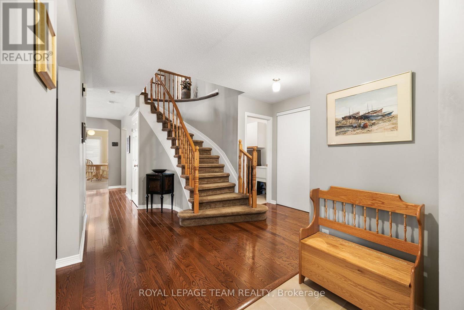 Lovingly maintained by the original owner, this MacDonald Homes built "Highlander" model (built in 1993) is the perfect family home in the heart of the Fallingbrook/Pineridge area of Orleans. Offering over 2,000 sq. ft. of above-grade living space, this home has room for everyone with 4 spacious bedrooms and a bright, inviting layout. The main floor features a welcoming living and dining room with beautiful maple hardwood floors, a large eat-in kitchen filled with natural light, and a cozy family room with a wood-burning fireplace-just right for family movie nights or relaxing evenings at home. You'll also find a convenient powder room, main-floor laundry, and inside access to the double garage. Upstairs, the generous primary bedroom includes its own sitting area with cathedral ceiling, a four-piece ensuite, and a walk-in closet. Three additional ample sized bedrooms and a full four piece bathroom provide plenty of space for kids, guests, or a home office. The lower level is unfinished and ready for your personal touch-think playroom, gym, or great room! The large lot and yard (33.74 x 106.48 x 51.54 x 108.84) provides plenty of space for the children to play, as well as has a deck off the sliding doors from the kitchen. This home's spectacular location is on a quiet, family-friendly street just steps from Trillium Elementary School, and is also quite close to a variety of parks, shopping, and transit......This home offers both comfort and convenience. Updates include A/C (2024), Trane furnace (2013), most windows (2006-2011), and roof (2009). .24-hour irrevocable on all offers. Public Open House: Sunday, October 26th, 2-4 p.m (id:58075)