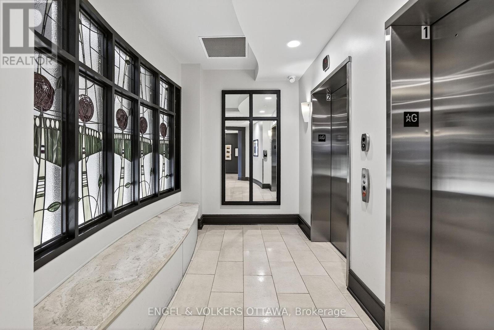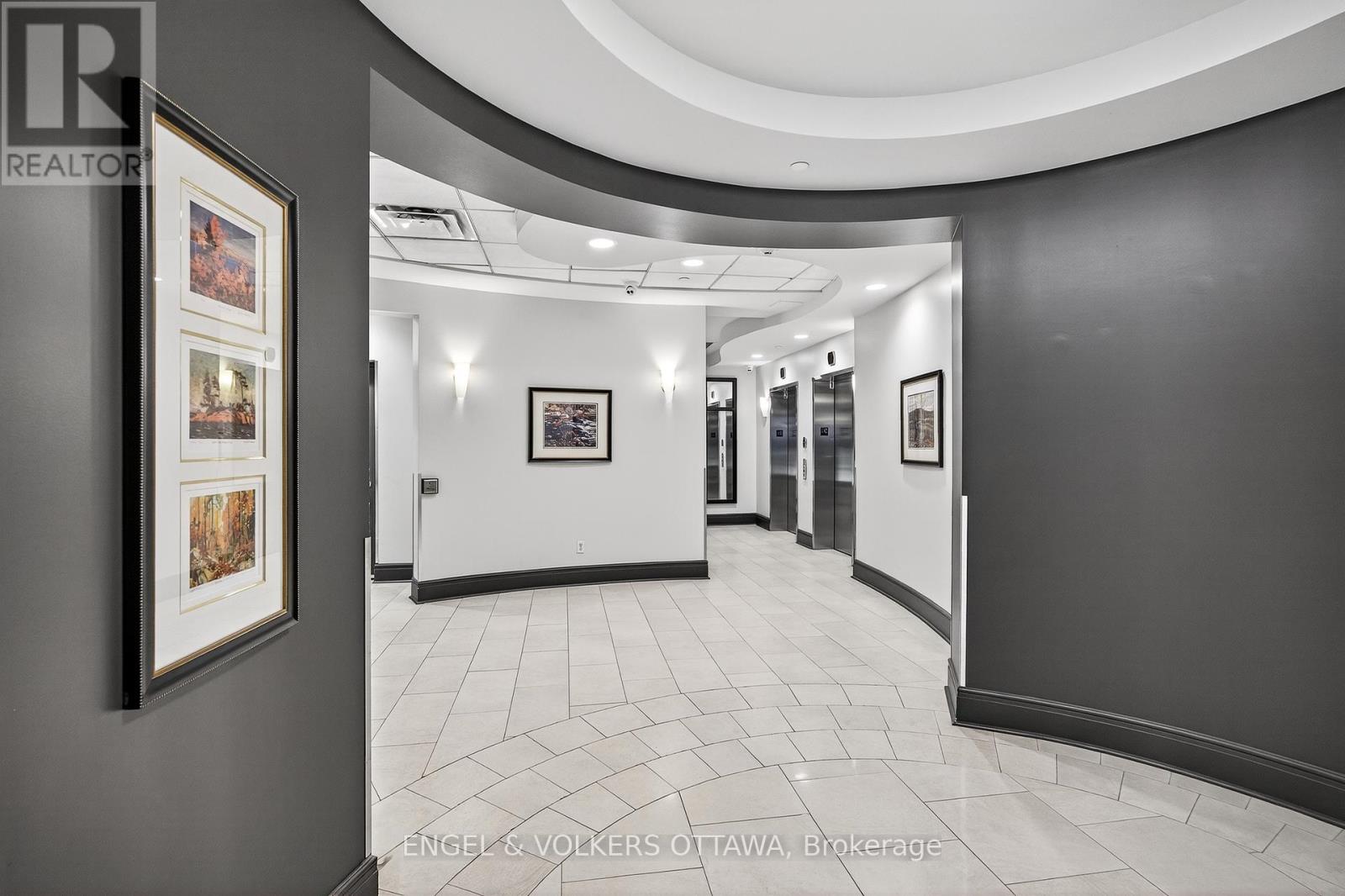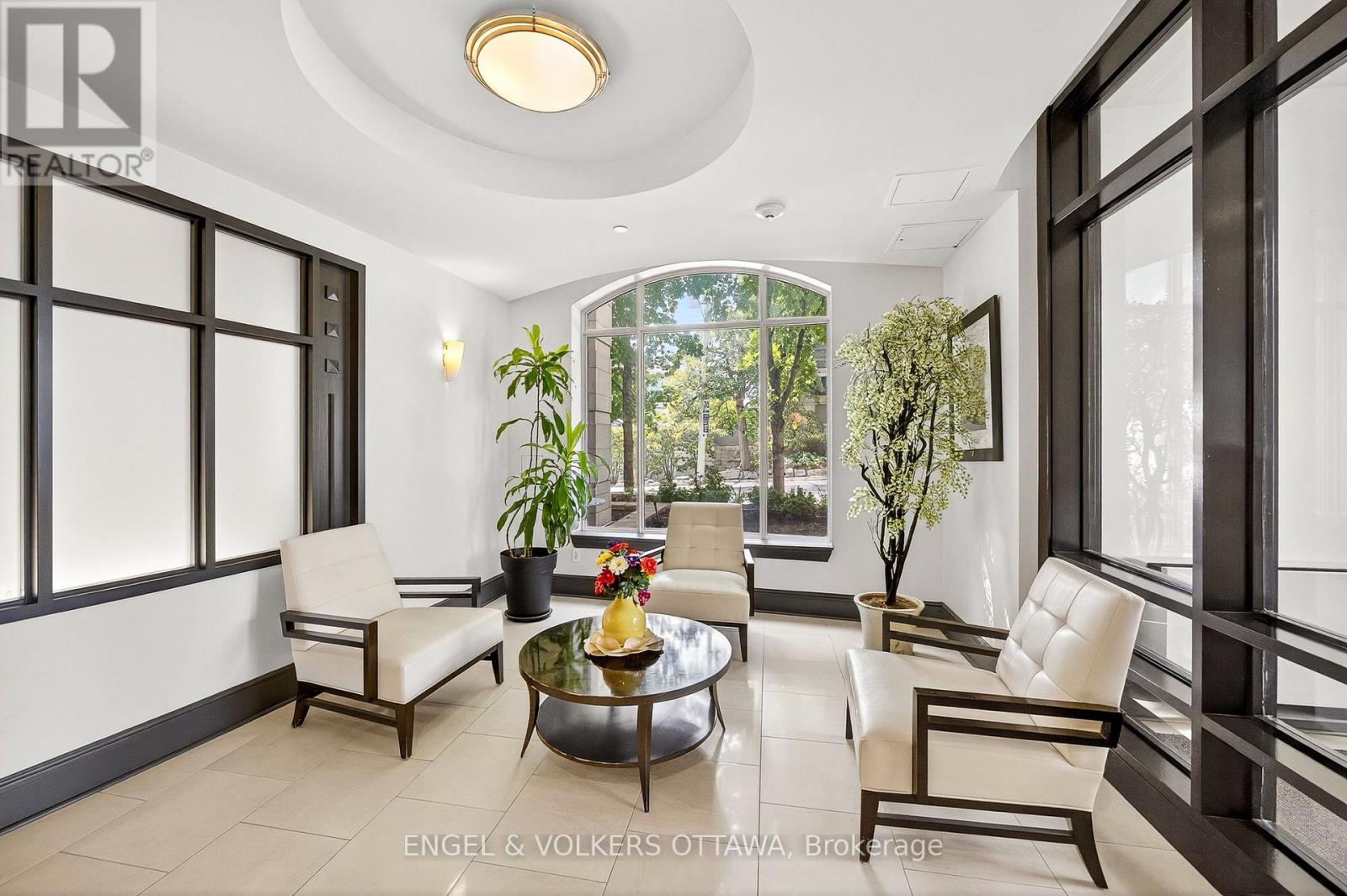 Experience city living at its finest in this stunning 2-bedroom, 2-bathroom condo at 95 Bronson Avenue (The Gardens) a prestigious Charlesfort development. Perfectly positioned in a quiet downtown setting, this residence is just steps from parks, bike & walking trails, the Ottawa River, ByWard Market, Lebreton Flats, the National War Museum, Sparks Street, Parliament Hill, and the LRT. Inside, enjoy soaring 9-foot ceilings, floor-to-ceiling windows with beautiful custom fitted California shutters, and a sun-filled south-facing balcony, creating a bright, airy atmosphere. Elegant maple hardwood floors flow through the open living and dining space, designed for both comfort and style.The chefs kitchen is a true highlight, featuring custom cabinetry featuring warm accent lighting, ample storage, granite countertops, island with raised breakfast bar and premium stainless steel appliances.The primary suite offers a serene retreat with generous closet space, a full ensuite bath, and a custom-built pax/cabinet. A versatile second bedroom and a well-appointed second bathroom with oversized tiled shower complete the layout. Custom mirrored doors on both bedrooms adding style and light reflection. Building amenities include a private courtyard and garden, secure underground parking with bicycle space, visitor parking, car wash station, gym, party room, and a well-maintained lobby and common spaces. Condo fees conveniently cover heat and water.This exceptional home also includes 1 underground parking space and a storage locker (parking PA-4, locker L1-38). Recent addition of popular grocery store blocks away. Freshly painted and move in ready - an ideal opportunity for professionals, diplomats, MPs, or downsizers seeking a refined lifestyle in one of Ottawa's most desirable downtown location. 24 hours on offers per form 224./244 Some photos virtually staged. (id:58075)