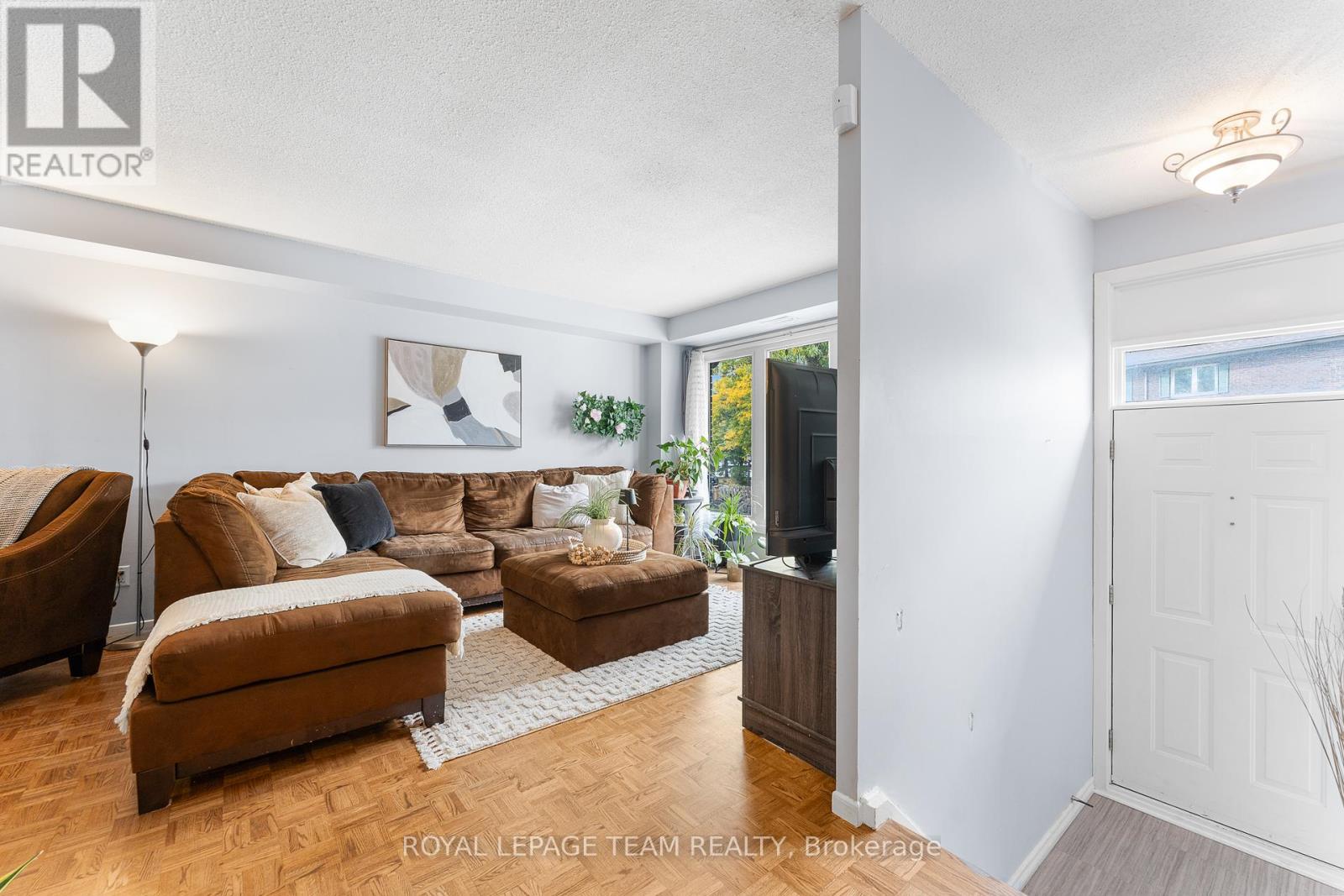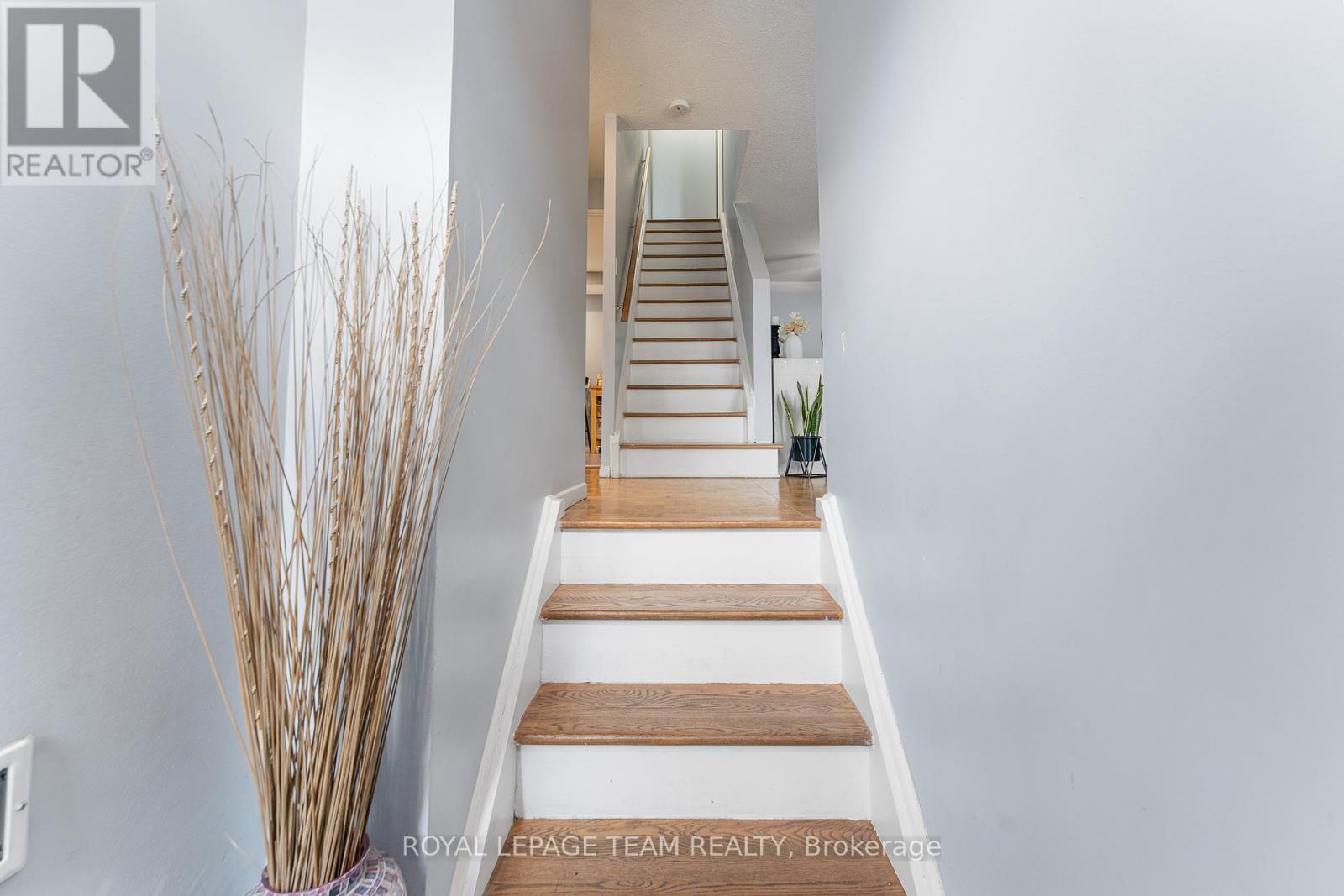 Tucked away on a quiet cul-de-sac, this end-unit condo townhome offers beautiful views of Mooneys Bay and breathtaking sunsets. The main floor features a bright open-concept living and dining area with oversized windows, a spacious eat-in kitchen, convenient laundry, powder room, and a versatile bedroom or office.Upstairs, you'll find two large bedrooms and a 4-piece bath, while the lower level provides a generous recreation room perfect for family living. A private front patio creates an ideal space for outdoor entertaining, and residents can enjoy a stunning outdoor pool overlooking the Rideau River.With direct access to Mooneys Bay Park, the beach, and nearby bike trails, plus close proximity to Carleton University, the LRT and downtown, this home combines comfort, location, and lifestyle all at an exceptional value. Ample Visitor Parking. Roof (2023) Furnace(2020) Windows (replaced before 2015) (id:58075)